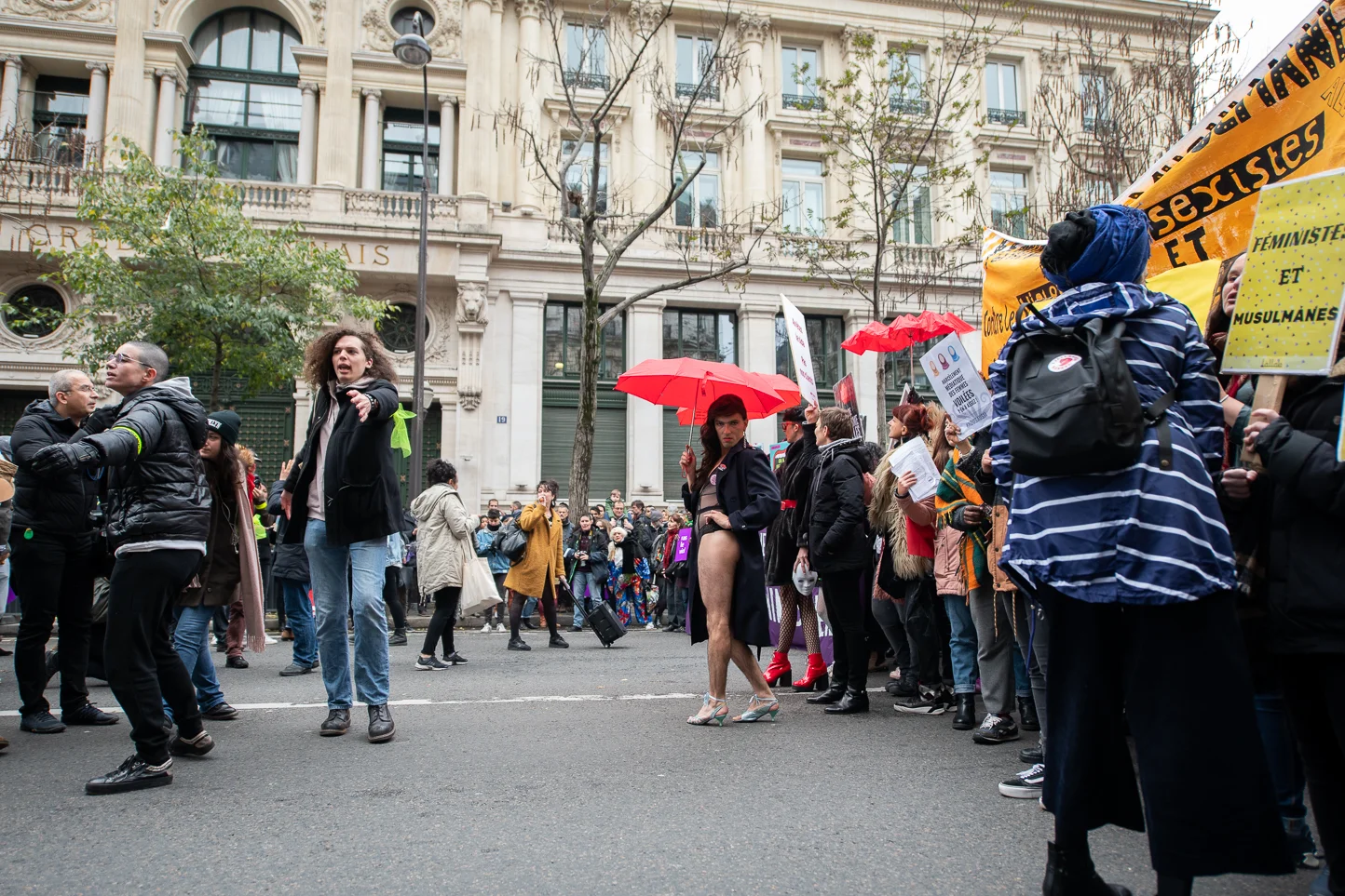 The Nous Toutes march walking past the Théâtre de la Porte St Martin