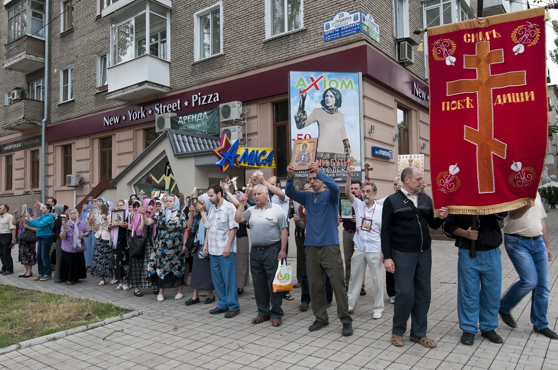 Christian Orthodoxe procession blessing a neighborhood of Donetsk